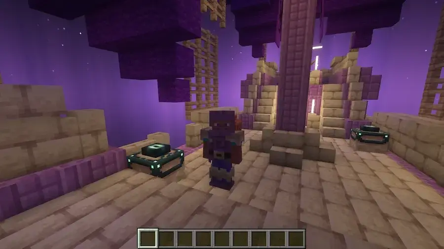 End Villager Trader - добавляет в Край нового жителя, предлагая уникальные предметы, относящиеся к этому измерению, и эксклюзивную броню Шалкера. Торговец появляется только на своем корабле, который генерируется, паря высоко в биомах Края, хотя вы также можете вызвать его, поместив его специальный рабочий стол (шалкер) рядом с сельским жителем, не имеющим профессии.