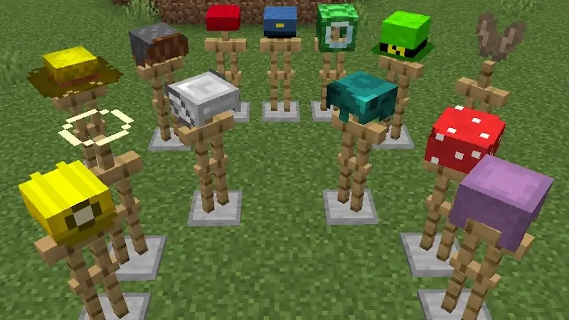 Useful Hats - добавляет разнообразие шляпы для вашего персонажа Minecraft. Шляпы могут быть окрашены в разные цвета, всего в них 9 разных шляп, и каждая из них имеет улучшения для вашего персонажа.