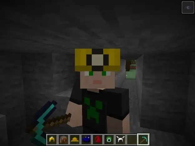 Вы получаете эффект удачи, когда держите в руках топор, меч или удочку. - Шляпа шахтера