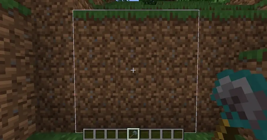 Если вы хотите разбить только один блок, нужно нажать Shift, чтобы экскаватор работал как обычная лопата. Это делает его универсальным и практичным инструментом, идеально подходящим для повышения эффективности при желании разбить большое количество блоков.