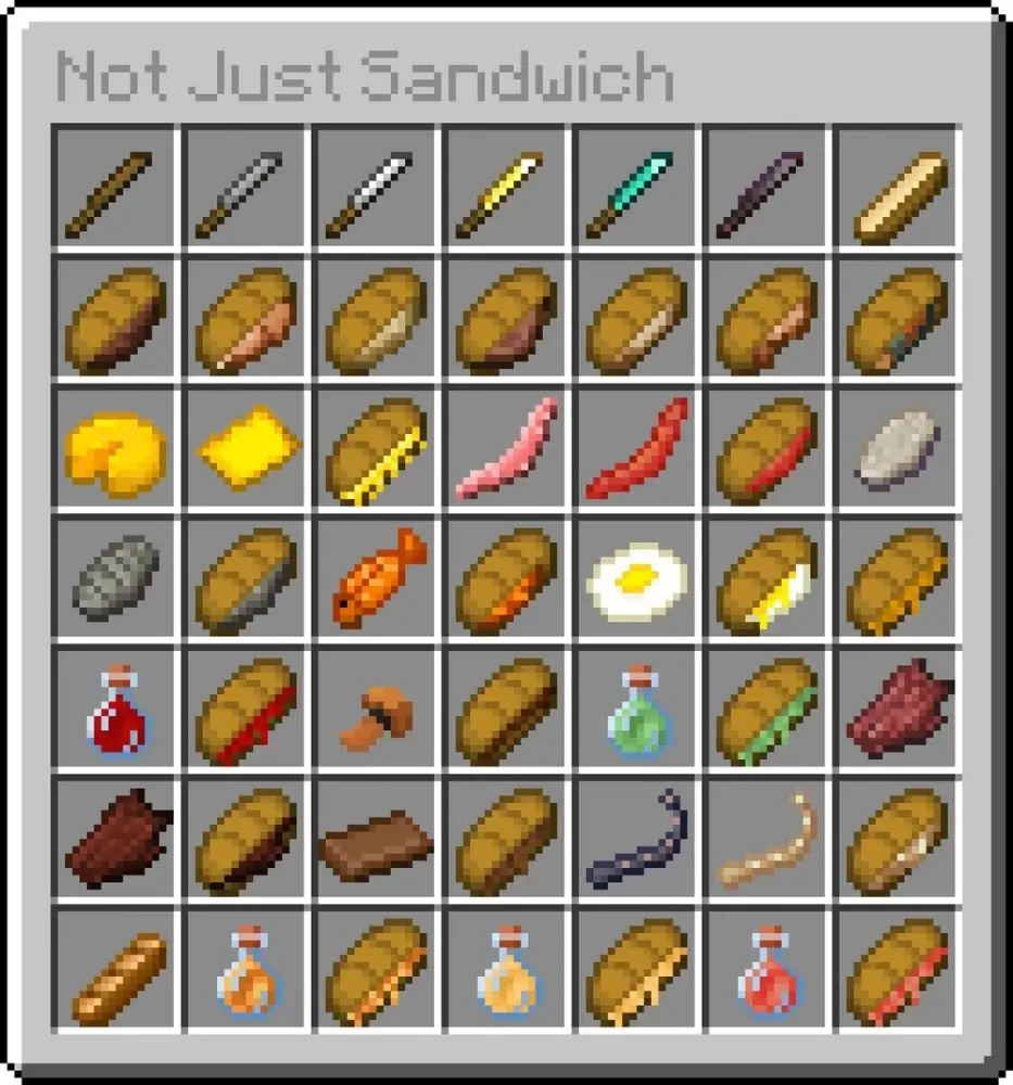 Not Just Sandwich - добавляет разнообразные бутерброды и другие продукты, они сделаны с использованием ванильных элементов. Будет в общей сложности 17 различных бутербродов для приготовления, а также другие блюда, такие как суши, бекон, сыр, желе, яичница и фруктовые пирожные.